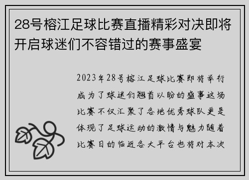 28号榕江足球比赛直播精彩对决即将开启球迷们不容错过的赛事盛宴