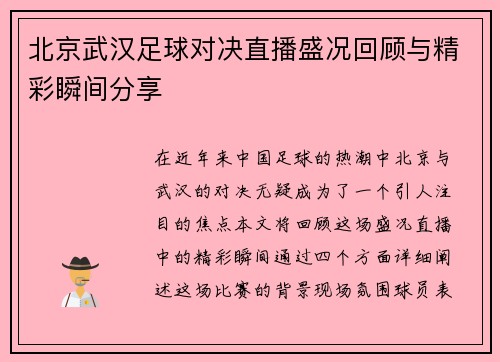 北京武汉足球对决直播盛况回顾与精彩瞬间分享