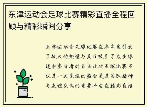 东津运动会足球比赛精彩直播全程回顾与精彩瞬间分享